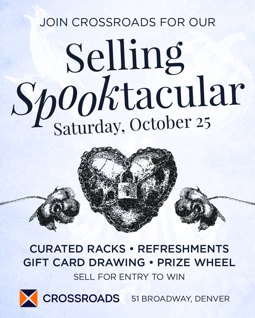 On Saturday, October 25th join us to for a party! Sell us your pre-loved fashion to enter our gift card drawing and spin the prize wheel. We’ll also have special curated trend racks and yummy refreshments. We hope to see you there!