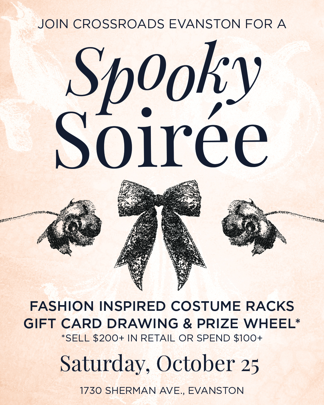 Visit Crossroads Evanston on Saturday, October 25th for a Halloween celebration. Shop fashion-inspired costume racks, spin the prize wheel, and enter our gift card drawing!